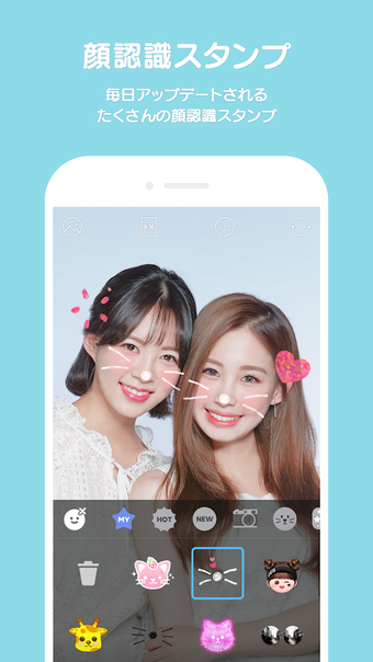 エフェクト、顔認証スタンプ、アバターなど多数の画像編集/加工が出来る人気上昇中のアプリ。その豊富な素材の数が圧倒的な数を誇り、人気の理由となっている。